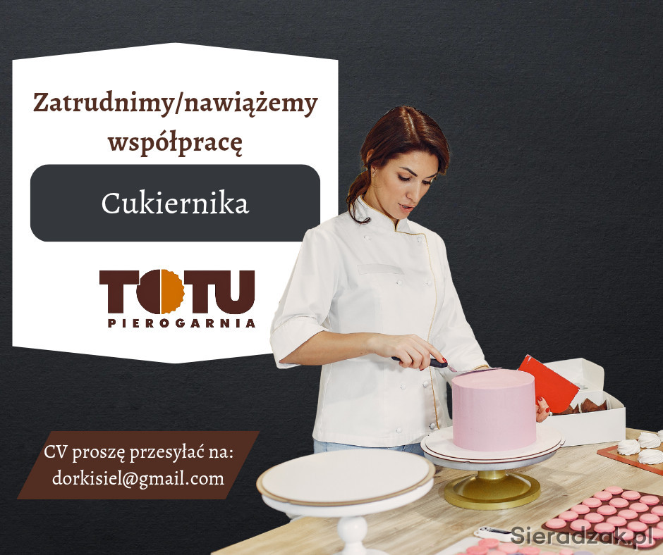 TOTU Pierogarnia poszukuje osoby na stanowisko Cukiernika lub do stałej współpracy w zakresie produkcji wyrobów cukierniczych.