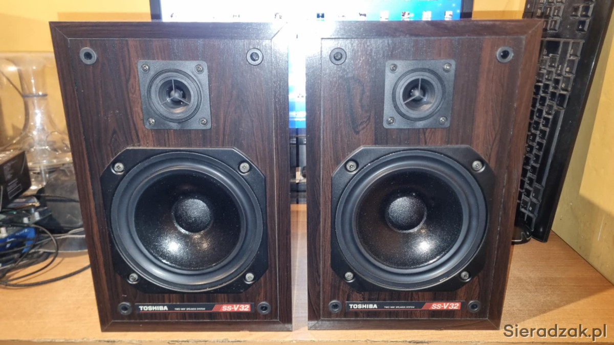 Kolumny monitory TOSHIBA SS-V32 2x40W 8ohm U.K. United Kindgom wyprodukowane w Angli bardzo rzadkie małe monitory podstawkowe regałowe.
