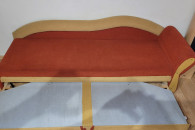 Łóżko jest rozkładane i posiada pojemnik na pościel.