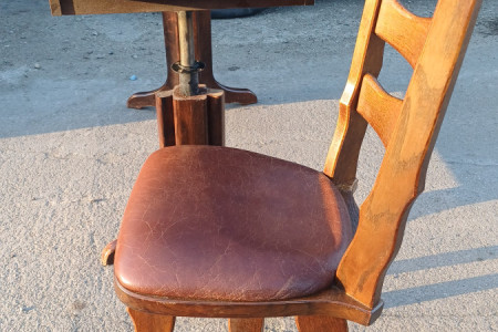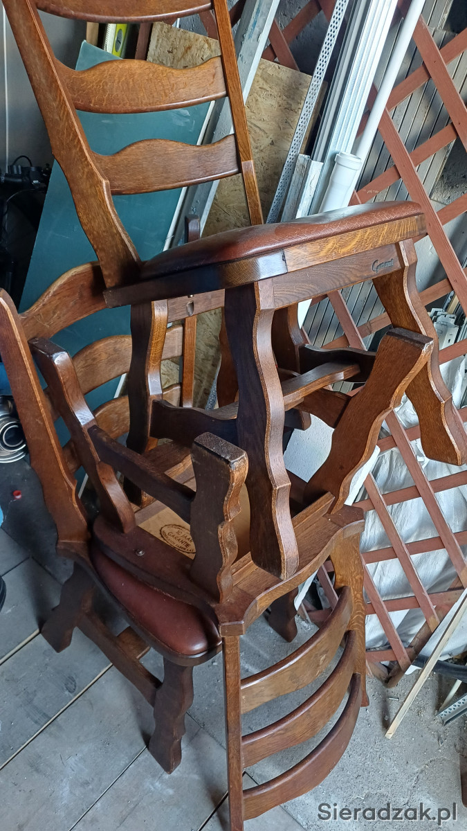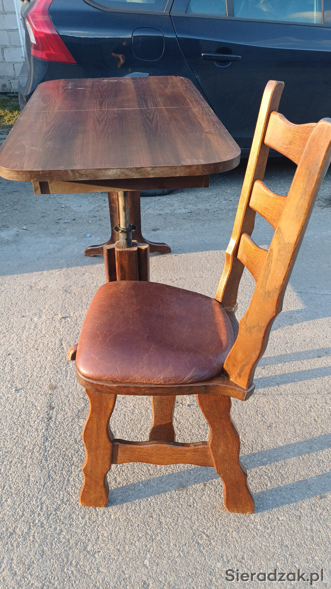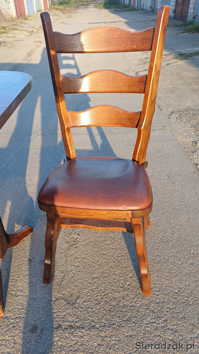 Sprzedam komplet, stol z regulacją wysokości, 4 krzesła dębowe, ze skórzanym siedziskiem. Cena do małej negicjacji. Więcej pod nr tel 501213600