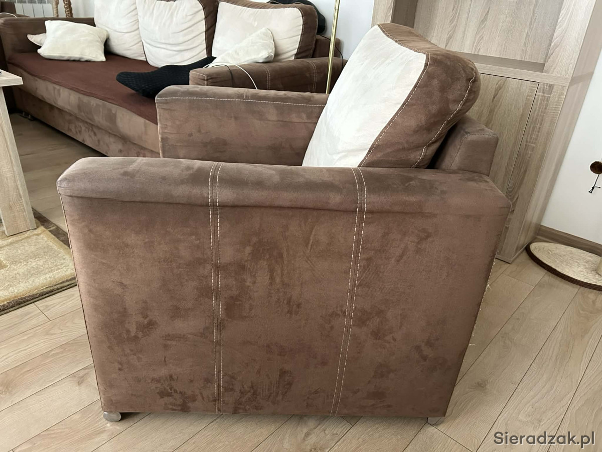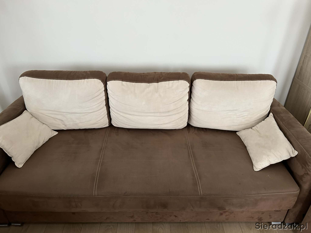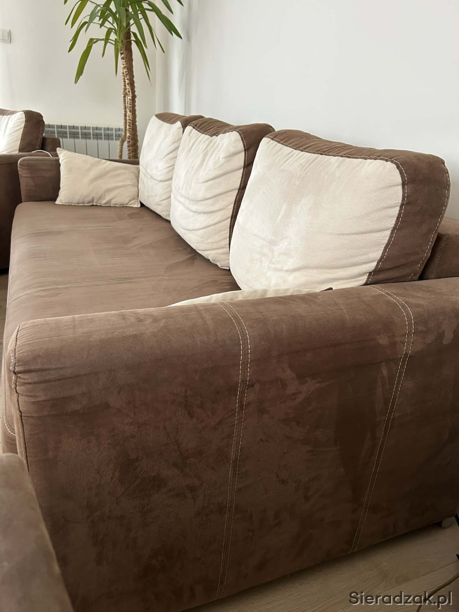 Meble są w dobrym stanie technicznym, do odświeżenia, z normalnymi śladami użytkowania. Kanapa rozkłada się do spania. Pod siedziskiem znajduje się pojemnik na pościel.