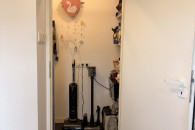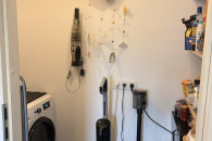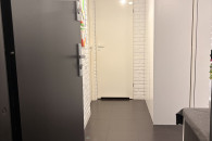 Rozplanowanie pomieszczeń (przeniesienie kuchni i toalety) pozwoliło na wygospodarowanie dodatkowej przestrzeni tuż przy kuchni, która z powodzeniem może pełnić funkcję pralni/spiżarni.