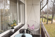 Mieszkanie posiada duży balkon typu logia z huśtawką oraz piwnicę. Od strony balkonu zamontowane są rolety antywłamaniowe. Drzwi wejściowe o najwyższej klasie bezpieczeństwa z potrójnym ryglowaniem.