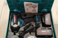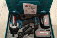 Akumulatorowy klucz udarowy Onevan 1500 Nm z dwoma bateriami, kompatybilnymi Makitą, w komplecie z walizką. Silnik bezszczotkowy, mocowanie na nasadki 1/2, 3 poziomy regulacji mocy odkręcania, poręczna walizka z rączką