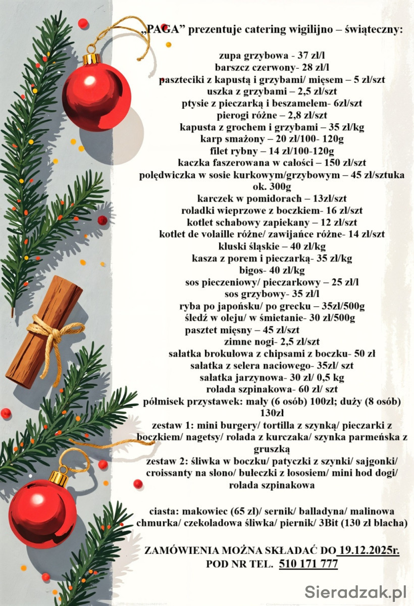 Jak tradycja to ... tradycja. "PAGA" w Smardzewie startuje z cateringiem świąteczno wigilijnym. Wszyscy którzy dzwonili i pisali zapraszam do składania zamówień na "święta all inclusive" bez długich godzin w kuchni ;) Zamówienia przyjmujemy do 19.12.2025r. pod nr 510 171 777