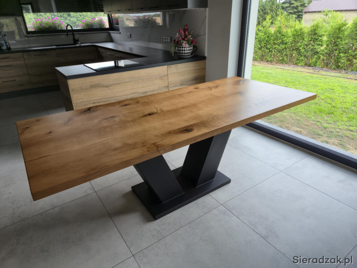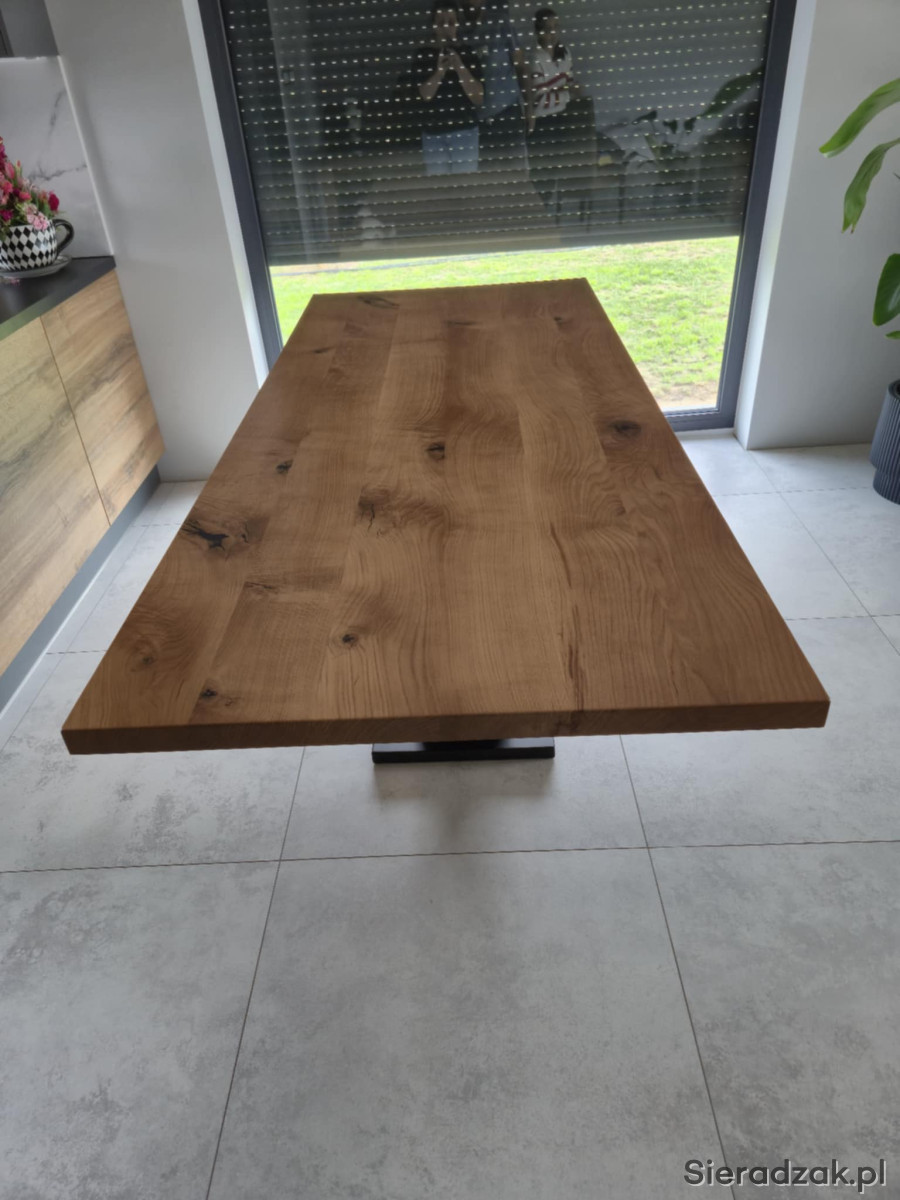 Na sprzedaż oferuję nowy, solidny stół dębowy w stylu loft, wykonany z litego, naturalnego drewna dębowego o imponującej grubości 45 mm. To mebel klasy premium, idealny do nowoczesnych wnętrz: salonu, jadalni, kuchni lub biura.