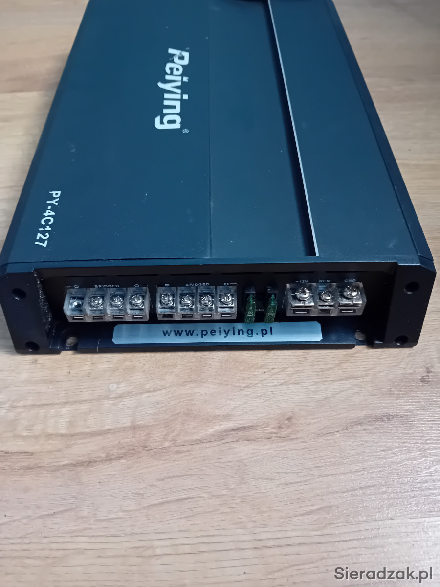 Używany, sprawny wzmacniacz Peiying. Posiada widoczne zarysowanie na zdjęciu w literze P.