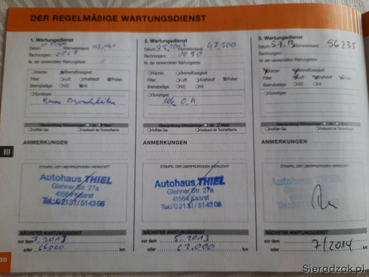 Oryginalny przebieg 110 tys km. Jako potwierdzenie posiadam książkę serwisową z Niemiec prowadzoną do lipca 2013 roku i wydruk z przeglądu technicznego z tej samej daty - wtedy auto miało przebieg 56 tys km. Później od 2014 roku w Polsce auto przejeżdżało średnio kilka tys km rocznie.