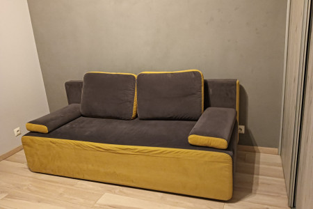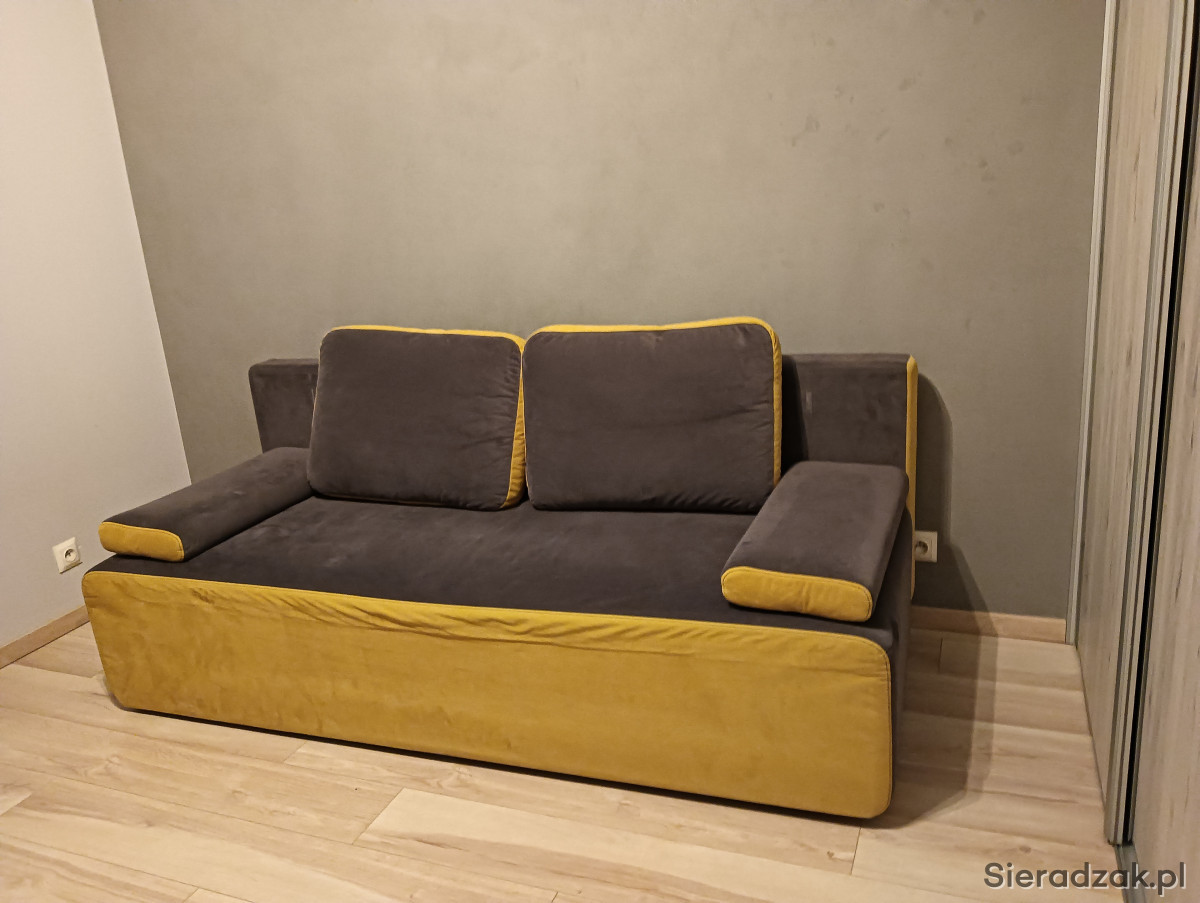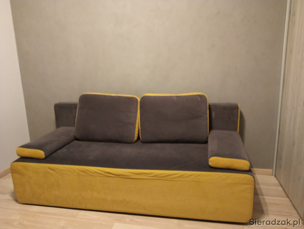 Mam do sprzedania w dobrym stanie sofe rozkładaną z funkcją spania 140x200, pojemnik na pościel, kolor ciemno szary z miodowym.