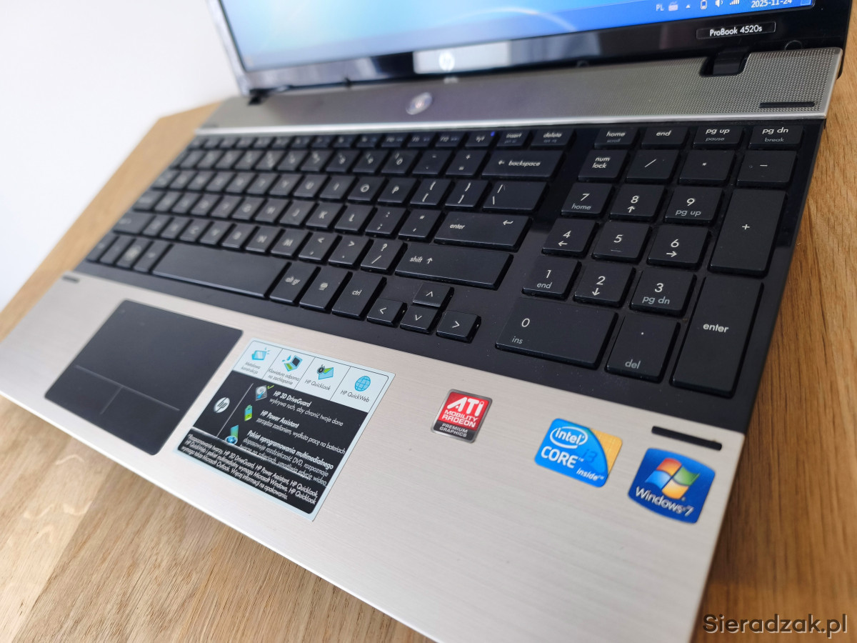 Sprzedam laptopa HP ProBook 4520s z matrycą 15,6". Używałem go do codziennych spraw typu internet, muzyka. Wizualnie bardzo zadbany. Technicznie bez zastrzeżeń. Wszystko pracuje tak jak powinno. Bateria trzyma do pół godziny. Sprzedaję komputer z zainstalowanym Windowsem 7 oraz pakietem Office. Wymieniona została pasta na procesorze. Przygotowany jest do dalszej pracy. Zachęcam do zakupu.