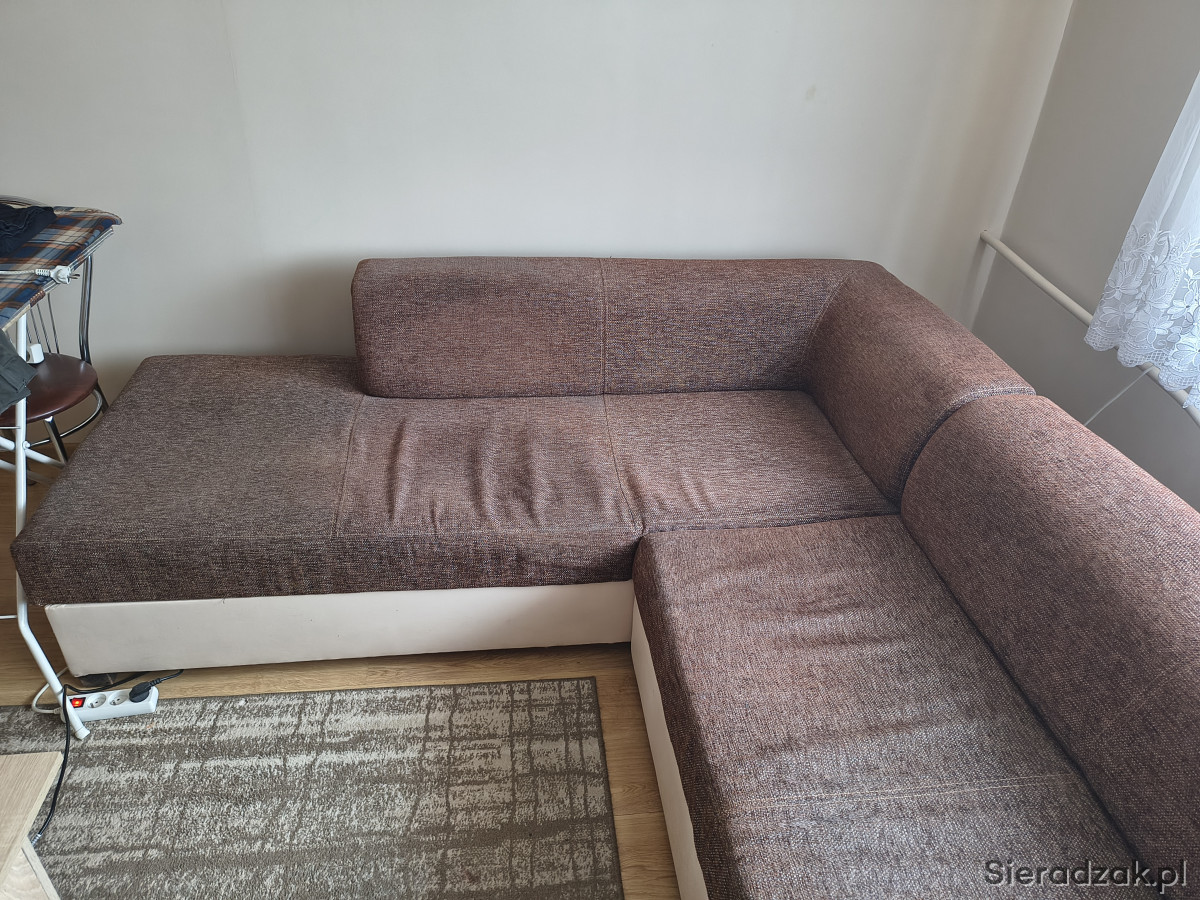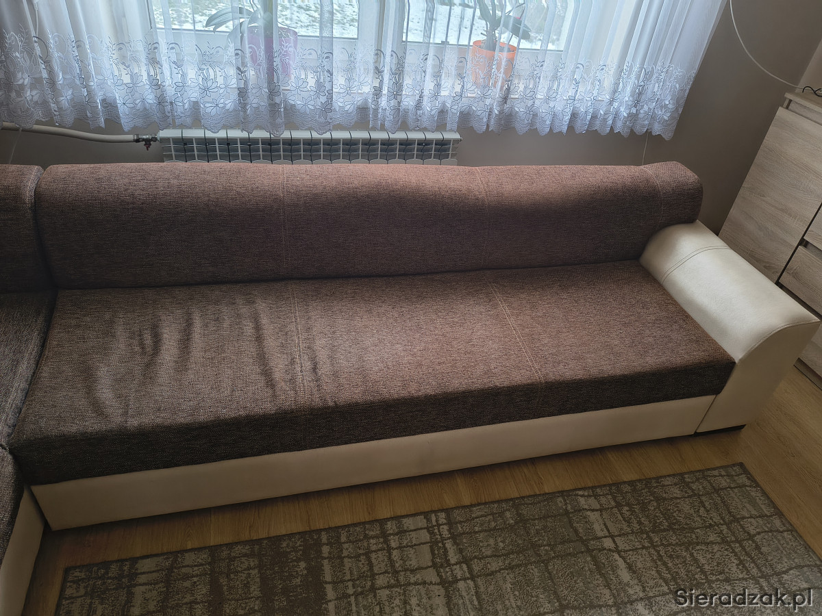 Sprzedam narożnik 3,2 x 2,2 kolor góra brązowa, dół jasna eko skóra, funkcja spania, pojemnik na pościel. Więcej informacji pod numerem telefonu 605627579