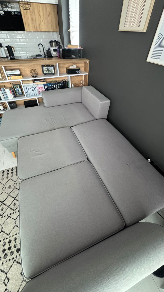 Sprzedam kanapę rozkładaną z funkcją spania, widoczną na załączonych zdjęciach. Kanapa niepozarywana, stabilna, wygodna, ewentualnie do odświeżenia. Długość całkowita z boczkami 240cm, szerokość po rozłożeniu 160cm, szerokość siedziska 1m. Odbiór osobisty w Sieradzu, cena do niewielkiej negocjacji.