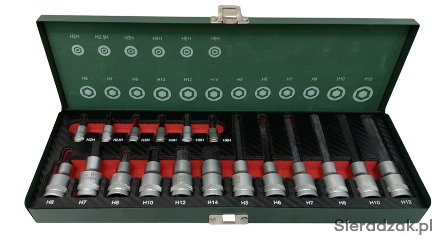 Zestaw kluczy nasadowych z bitami HEX: ok. 1,6 kg