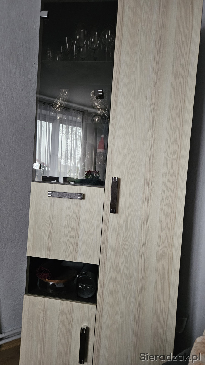 Komoda + witryna w ciepłych kolorach ,pięknie uzupełniają wnętrze pokoju lub salonu.