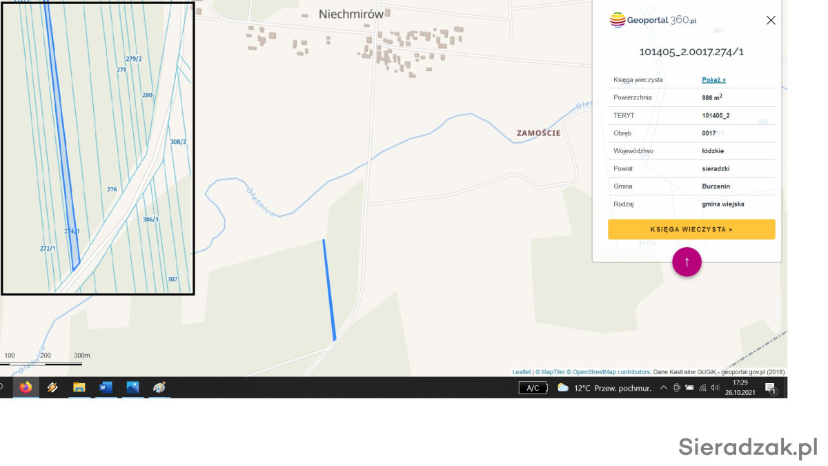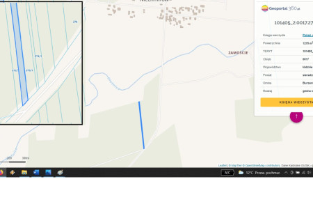 Są to fizycznie cztery działki , dwa paski przedzielone drogą gminną