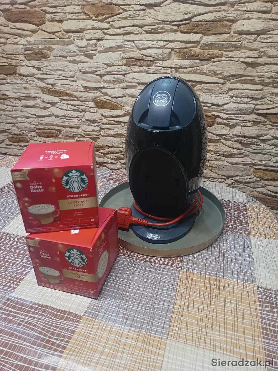 Ze względu na nowy ekspres do kawy oddam za kawę ziarnistą ekspres do kawy Ekspres DeLONGHI Dolce Gusto EDG250.B JOVIA dorzucam resztę kawy kapsułkowej która mi została. Ekspres ma przejściówkę ponieważ był przywieziony z Anglii ale wszystko sprawnie funkcjonuje.