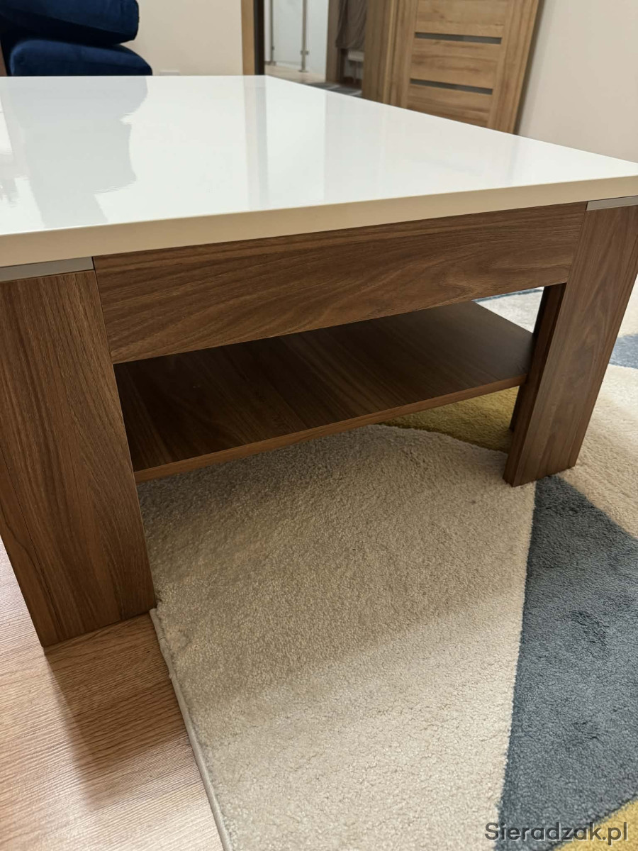 Do sprzedania używany stolik kawowy, ława firmy FORTE model SAINT TROPEZ SVOT22. Stolik, ława jest w stanie bardzo dobrym, zadbana, posiada normalne ślady użytkowania. Stolik wykonany został w ciepłym kolorze Dębu Sangallo wraz z białym połyskującym blatem.
