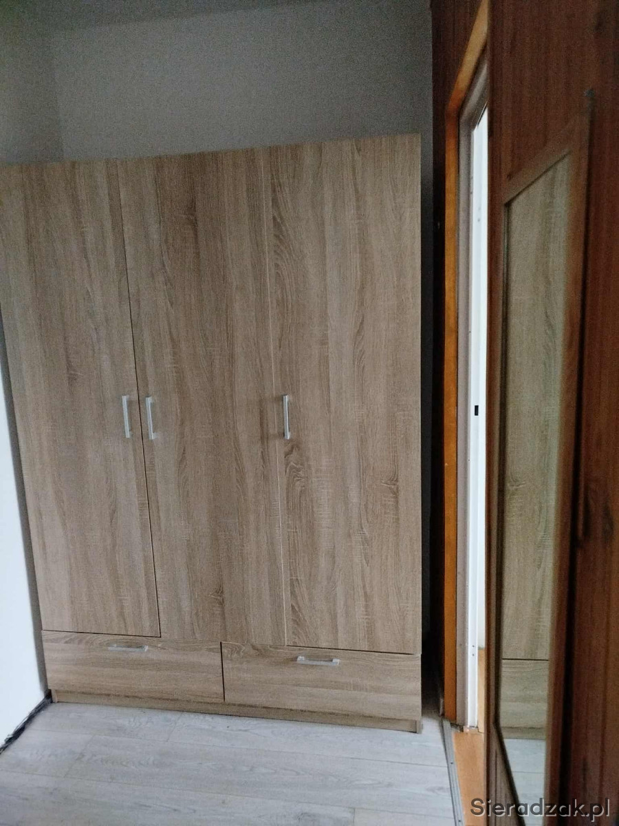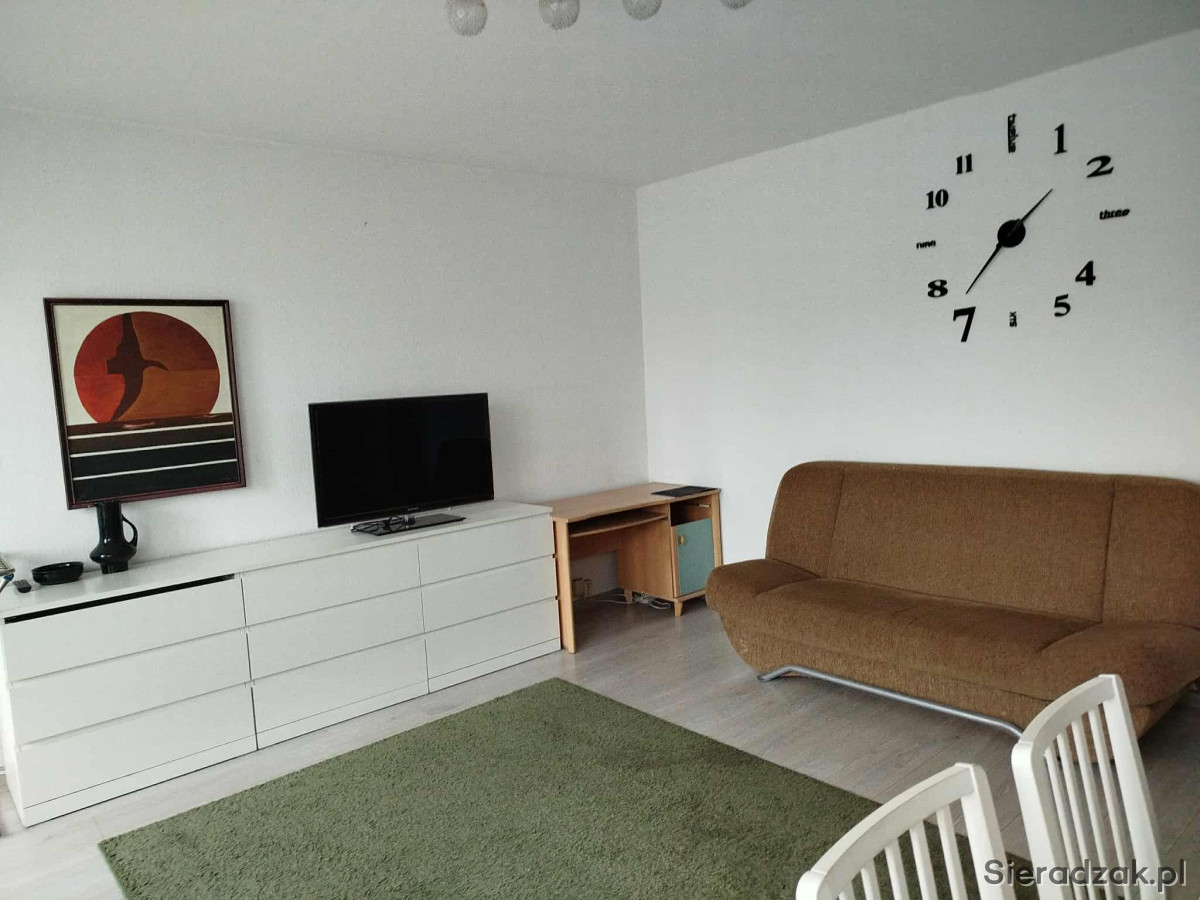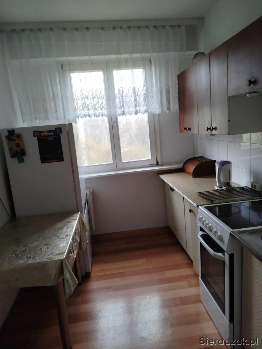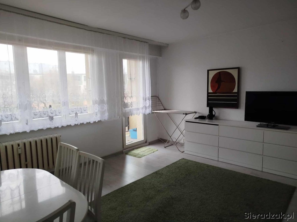 Wynajmę za 2400 zł 2 pokojowe mieszkanie w Sieradzu z widną kuchnią. W mieszkaniu znajduje się mały pokój, salon wyposażony w dwie komody, stół z krzesłami oraz kanapę. Z salonu jest wyjście na balkon. Jest oddzielna toaleta, łazienka z wanną i pralką, kuchnia (lodówka, piekarnik i kuchenka) ze stołem i stołkami. Na korytarzu znajduje się duża szafa oraz dodatkowe mniejsze szafki na buty, kurtki.