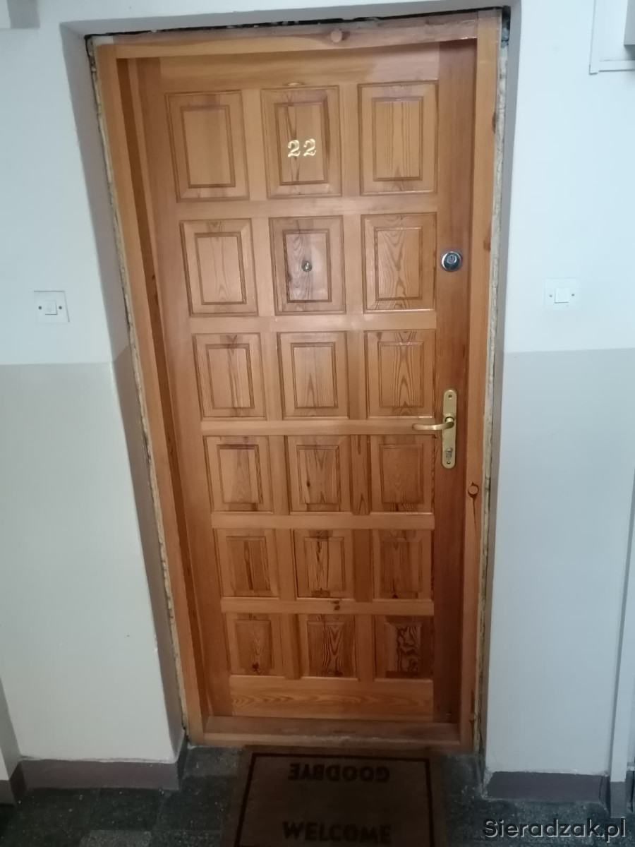 Sprzedam drewniane drzwi wejściowe PRAWE do mieszkania, sosnowe, z demontażu po remoncie.