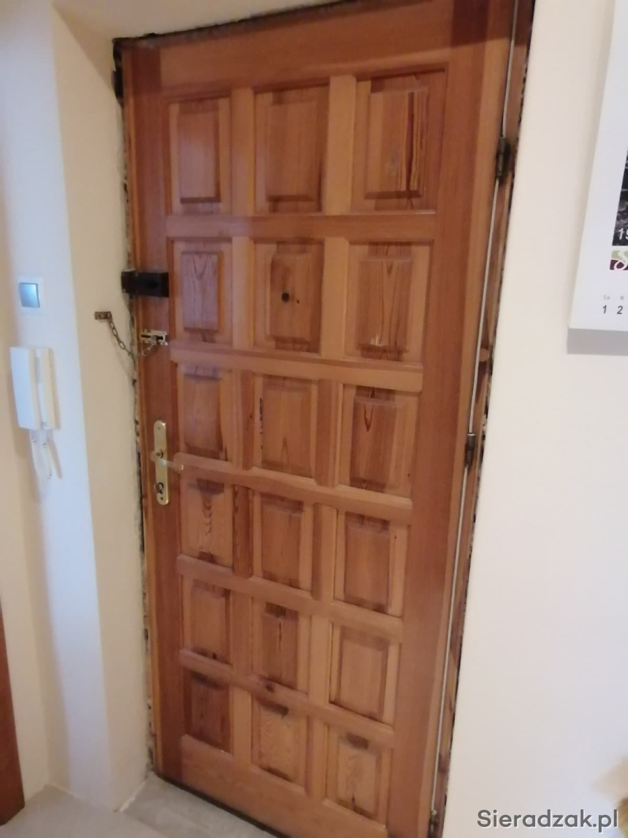 Drzwi zadbane, solidne, z naturalnego drewna, normalne ślady użytkowania.