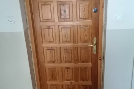 Sprzedam drewniane drzwi wejściowe do mieszkania, sosnowe, z demontażu po remoncie.