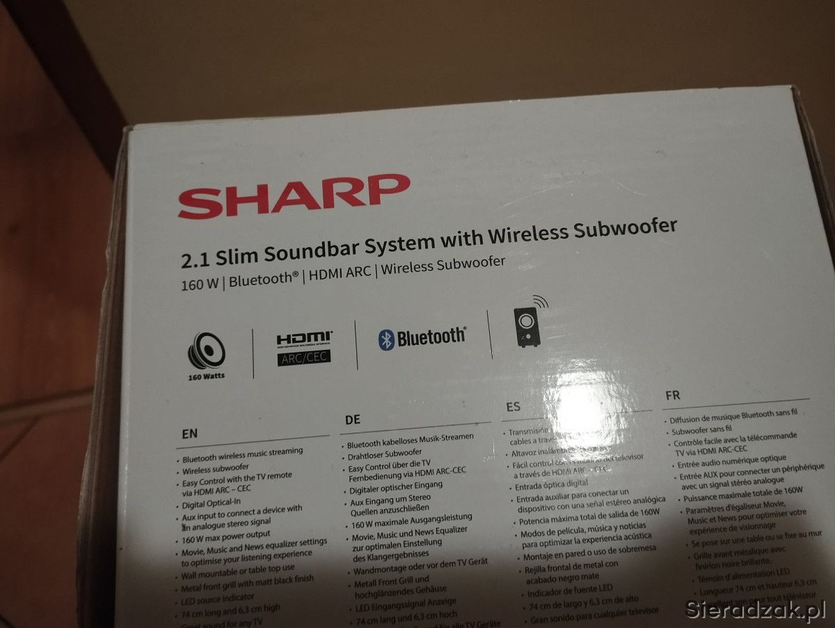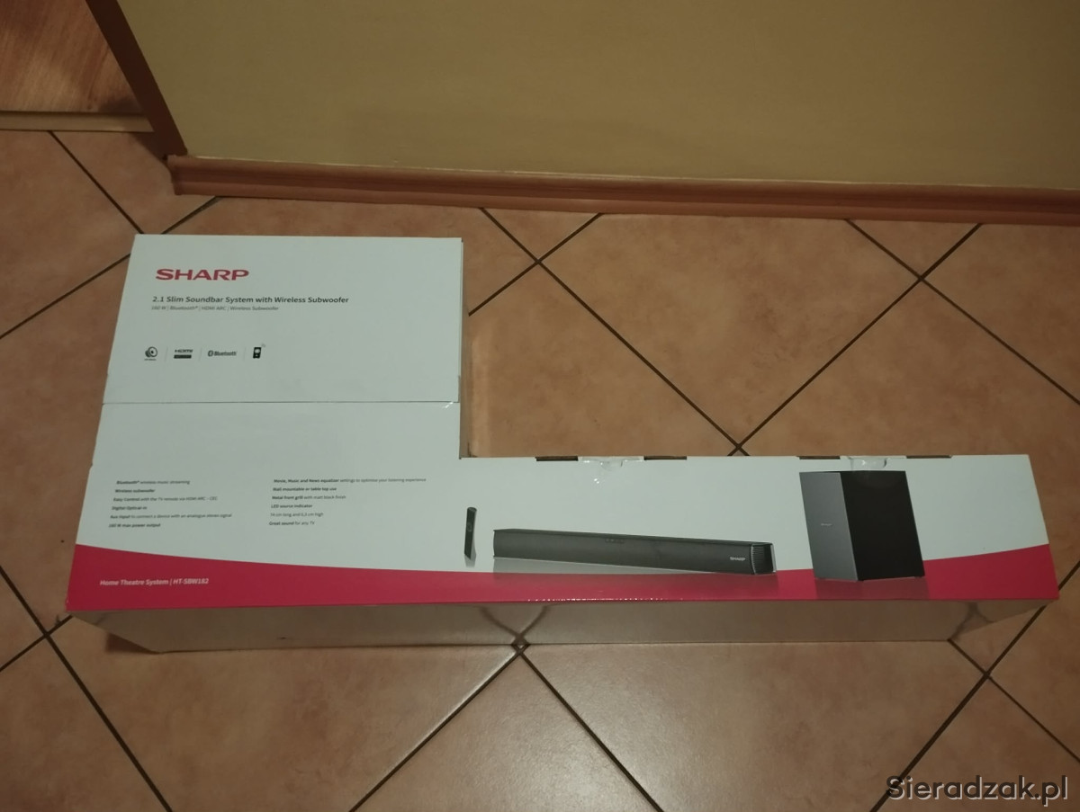 Soundbar SHARP HT-SBW182 Czarny 2.1-kanałowy, Bezprzewodowy Subwoofer, HDMI ARC, Bluetooth, Korektor EQ.