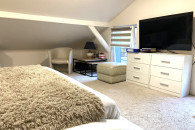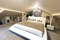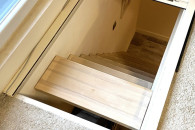 Większy dom o powierzchni ok. 65 m2 oferuje przestronny pokój z aneksem kuchennym, łazienkę, przedpokój a sypialnię zaprojektowano na wyższej kondygnacji z zamykanymi schodami /foto/. Znajdują się tu również dwa okna oraz miejsce na garderobę.