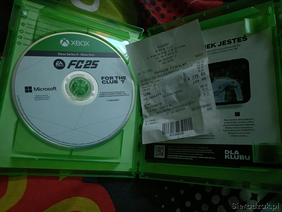 Sprzedaje grę FIFA 25 na konsolę Xbox One z gwarancją. W zestawie dowód zakupu ze sklepu Media Expert na kwotę 230zl.