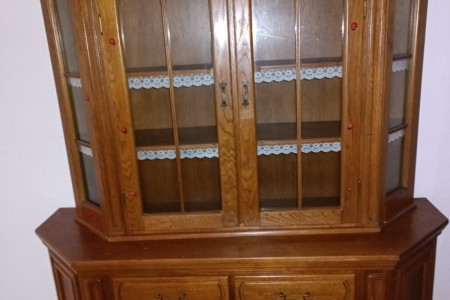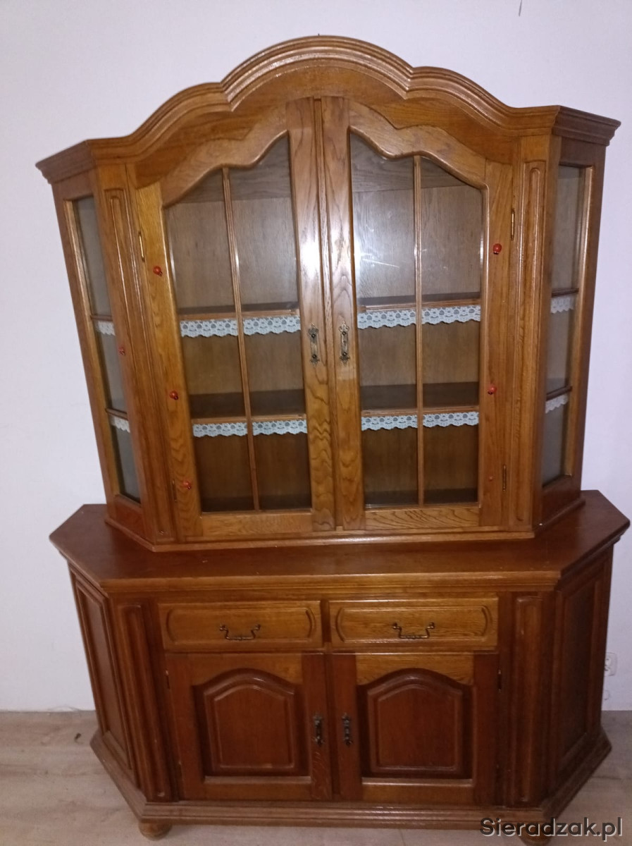 Posiadam do sprzedania stylową komodę z nadstawką na eksponowanie dekoracji. Mebel wykonany z drewna dębowego w rustykalnym stylu. Posiada dwie szuflady oraz dwie szafki z przeszklonymi drzwiami, które pozwalają na wyeksponowanie ulubionych przedmiotów. Komoda jest używana, ale w dobrym stanie. Doskonale sprawdzi się w salonie lub jadalni, nadając wnętrzu przytulny charakter.