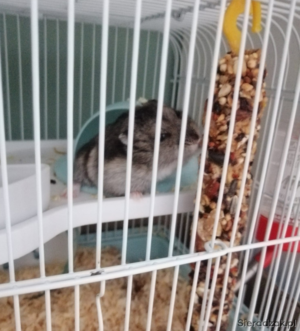 Do sprzedania połroczny chomik dżungarski wraz z klatką. Zwierzątko bardzo żywe, zabawne i w dużej mierze można powiedzieć bezobsługowe. Oddam w dobre ręce, gdyż ostatnimi czasy córka straciła fascynacje a może ktoś jeszcze nacieszy się małym zwierzakiem. W zestawie to co na zdjęciach czyli klatka z wyposażeniem oraz chomik. Zostało jeszcze troche trocin i pół kilograma karmy. Była też kula do biegania po mieszkaniu, ale gdzieś się zapodziała, dołożę jak znajdę. Myślę że całość warta z 200zł, oddam za 50zł.