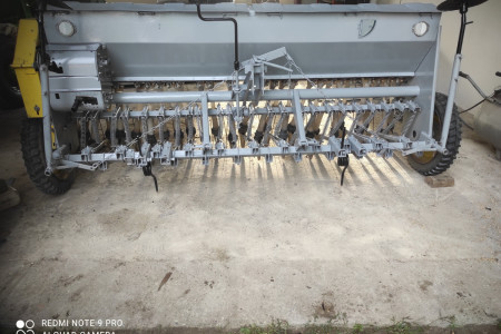 Siewnik zbożowy poznaniak 2.7m posiada znaczniki, plastikowe rurki, tabela wysiewu, docisk sprężynowy, wąskie koła, stan bdb
