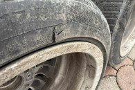 Jedna opona posiada uszkodzenie widoczne na zdjęciu