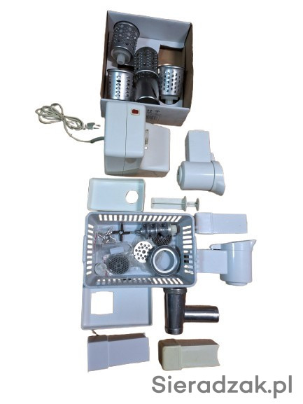 Używana (maszynka i akcesoria do mielenia), nowe (akcesoria do szatkowania), w pełni sprawna.