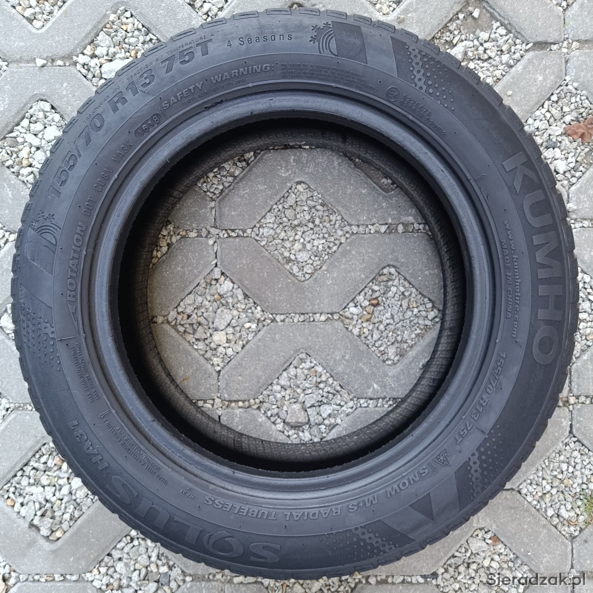 2x opony całoroczne wielosezonowe Kumho 155/70 R13 75T, DOT 1618, bieżnik 5,5mm. Opony w dobrym stanie jak na zdjęciach, sprawdzone ciśnieniowo.
