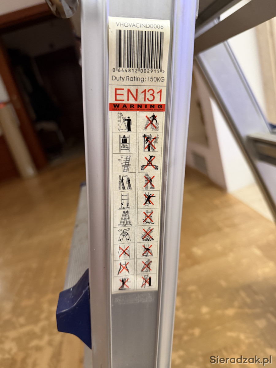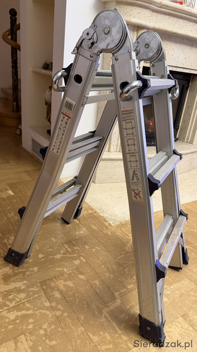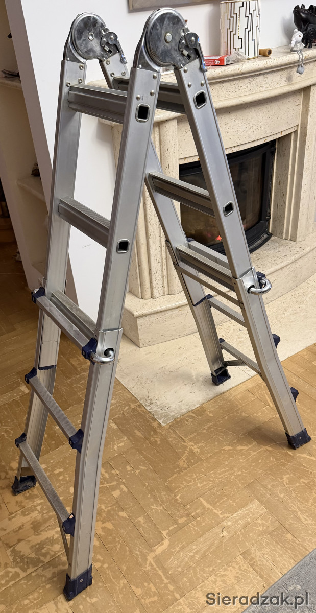 Solidna, aluminiowa drabina przegubowa z 5 stopniami. Nadaje się do prac wewnątrz i na zewnątrz. Solidna i wytrzymała konstrukcja zapewnia bezpieczeństwo i stabilność podczas użytkowania. Rzadko używana. Sprzedaje bo jest mi niepotrzebna. Wysokość ostatniego stopnia 133cm, wysokość& górnej krawędzi drabiny 148cm. Odbiór osobisty w Sieradzu