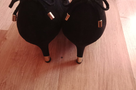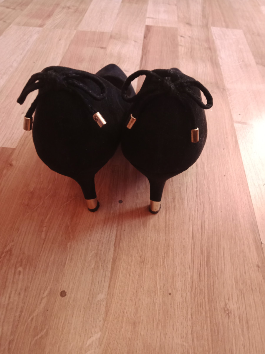 Czarne zamszowe szpilki.Jenny Fairy.Stan bardzo dobry.Z tyłu ozdobna kokardka,fleczek w kolorze złota.