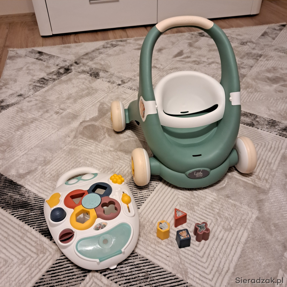 Stan oceniam na bardzo dobry. Polecam jako chodzik lub pchacz do nauki chodzenia. Można wozić lalkę. Kompletny