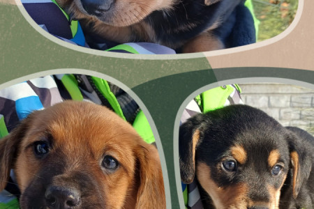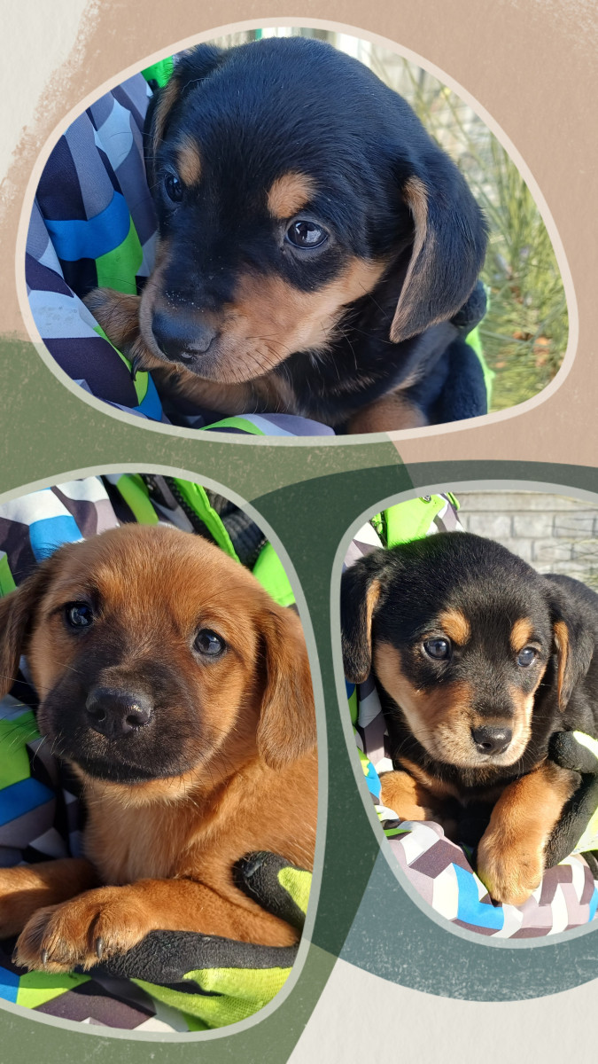 Oddam za darmo śliczne szczeniaczki, są 3 pieski i jedna suczka (zdjęcie w lewym górnym rogu). Urodzone 20 listopada. Zdrowe, ruchliwe i zabawne. Przyzwyczajone do dzieci. Jedzą mokrą karmę, piją wodę i mleko. Będą średniego wzrostu.