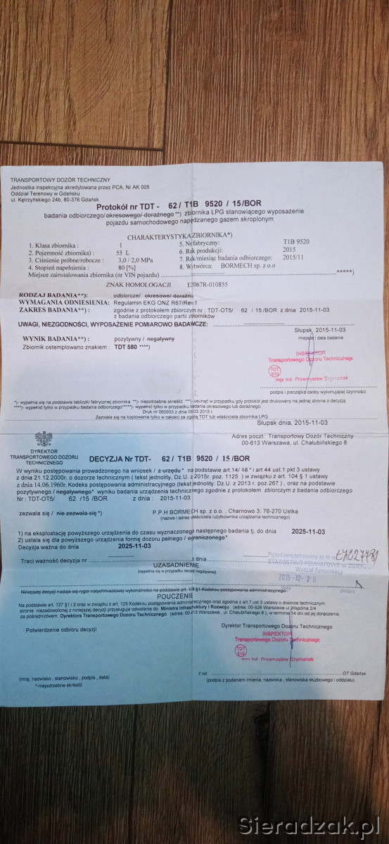 zbiornik LPG 55 l. z dokumentami.