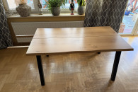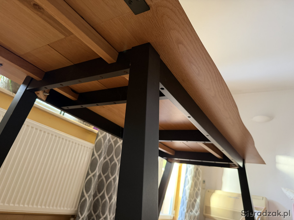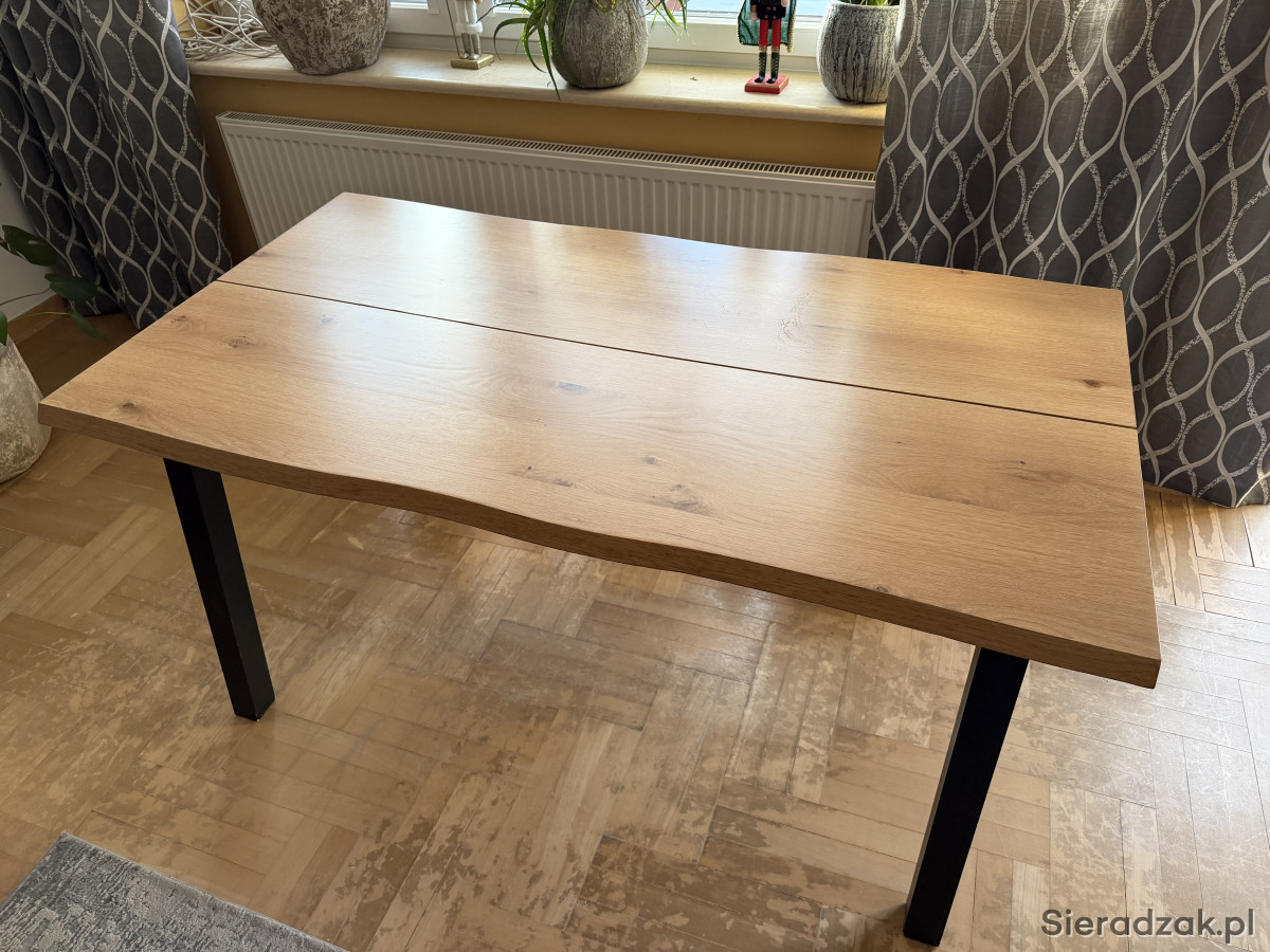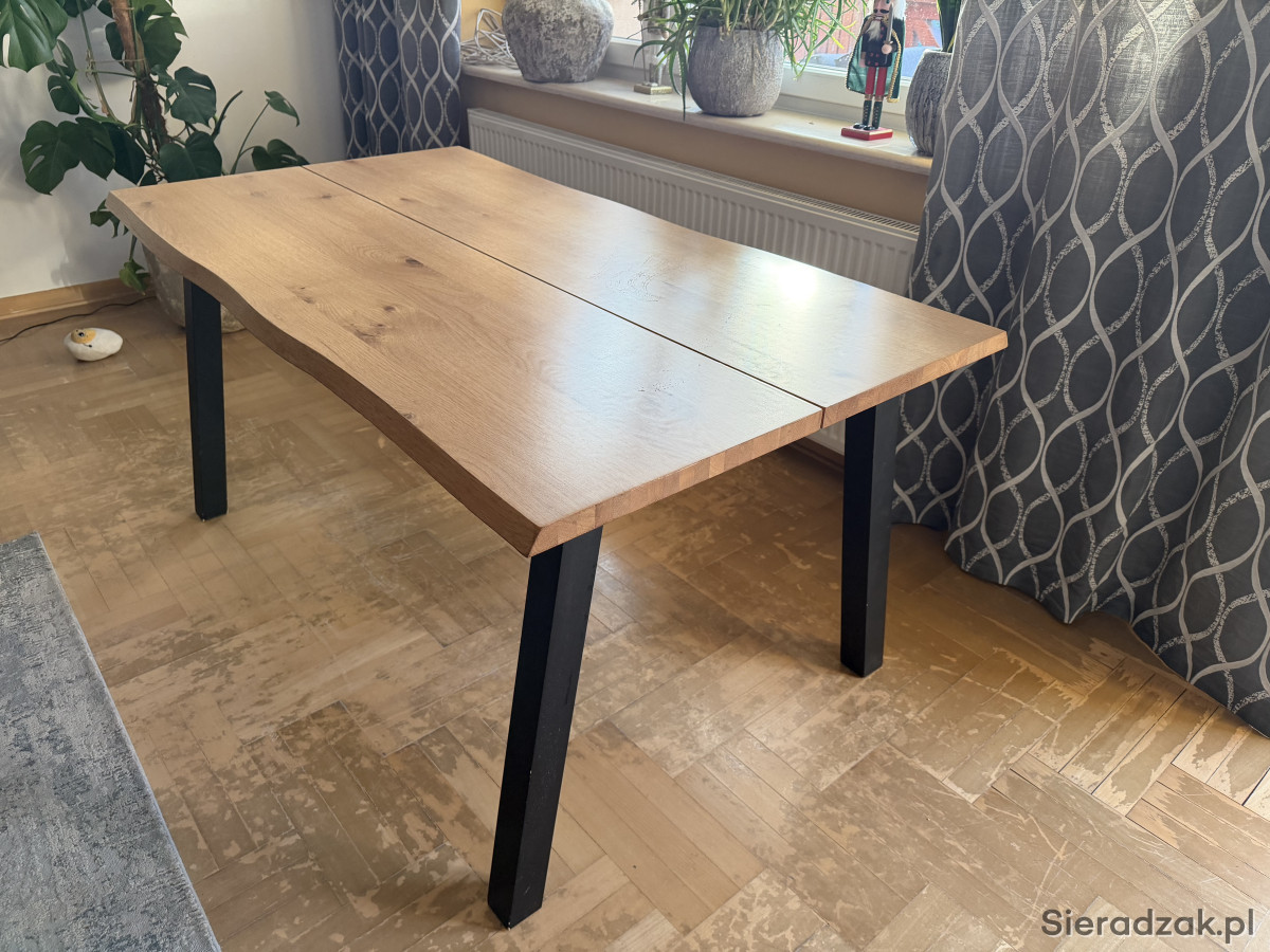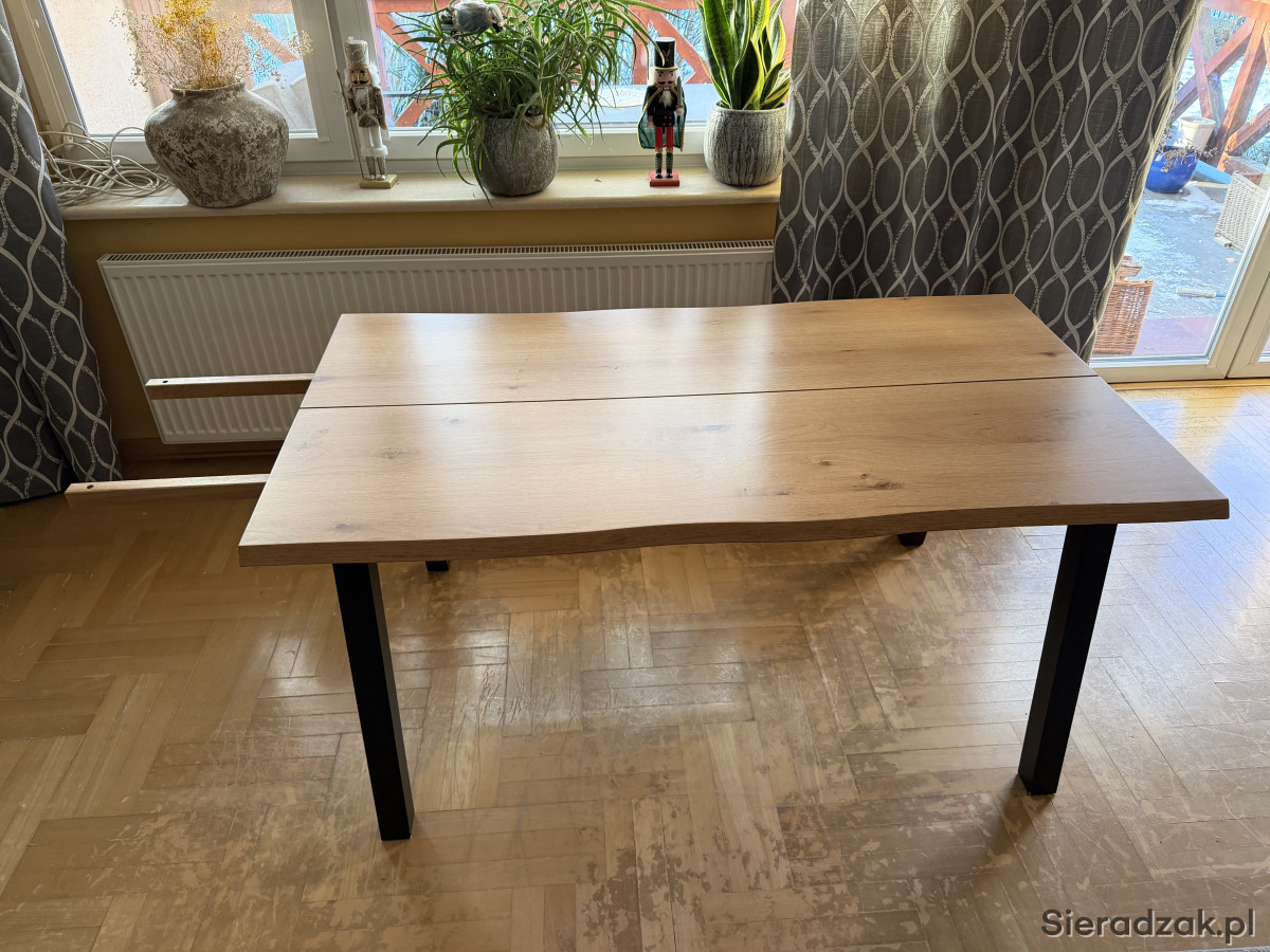 Solidny i stylowy stół jadalny z drewna dębowego w kolorze czarno-dębowym. Wymiary 90x160 cm, idealny do większych przestrzeni. Nowoczesna i minimalistyczna konstrukcja, która pasuje do różnych aranżacji wnętrz.