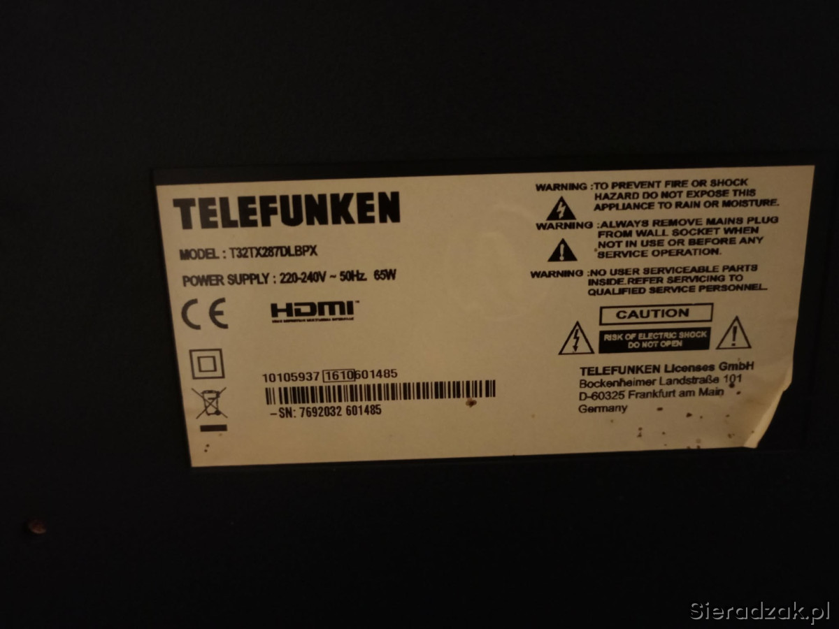 Na sprzedaż telewizor Telefunken o przekątnej 32 cale.