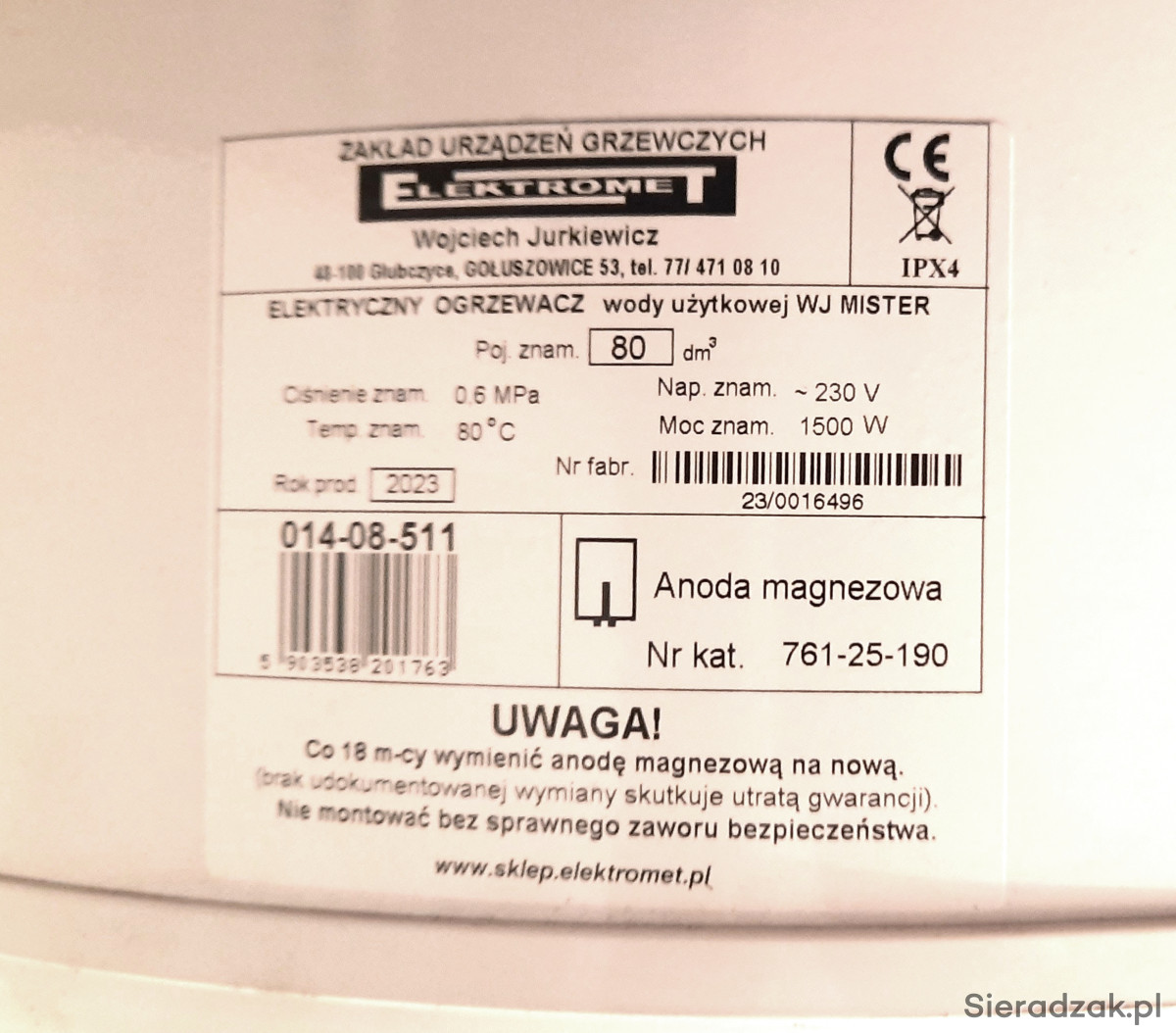Rzadko używany bojler elektryczny z 2023 r, o pojemności 80 dm3, stan idealny -