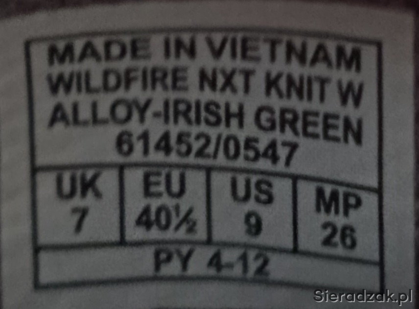 Sprzedam buty trekkingowe damskie BUTY WILDFIRE NXT KNIT WOMEN-ALLOY-IRISH GREEN w rozmiarze 40,5
