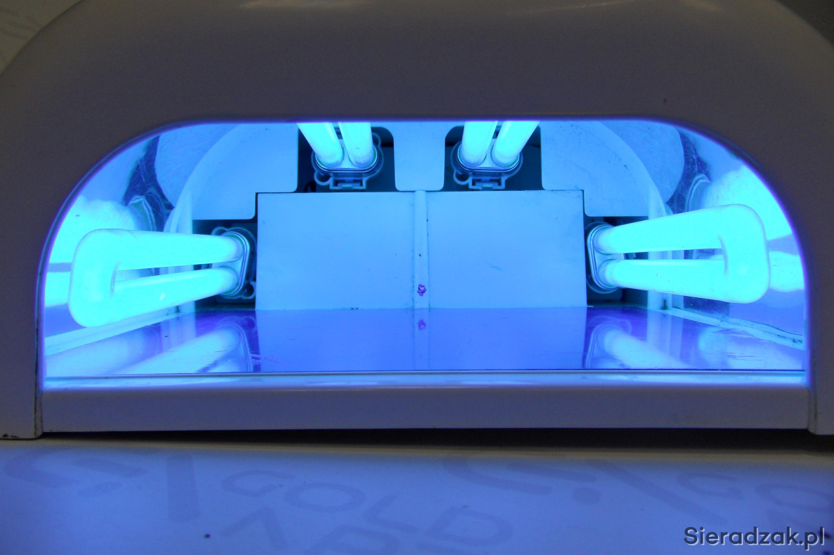 Profesjonalna lampa utwardzająca UV z wbudowanym transformatorem, który chroni żarówki przed nagłym zużyciem. Posiada cztery wymienne żarówki UV o mocy 9 W. Wewnątrz specjalny odblask wzmacniający działanie promieni UV. Lampa jest wyposażona w wyłącznik sieciowy i wyłącznik automatyczny, który po upływie 90/120 sekund pracy wyłączy żarówki UV.