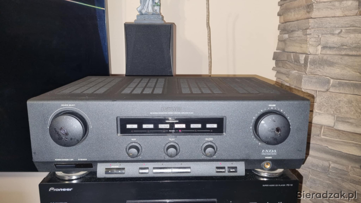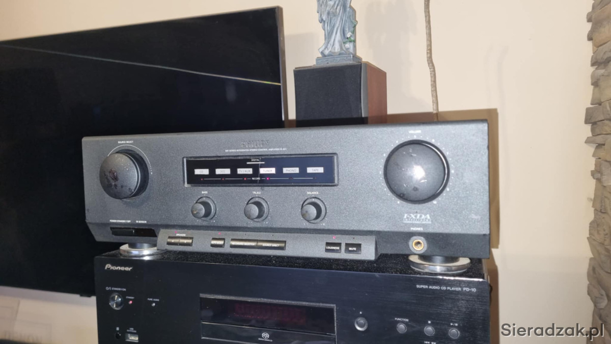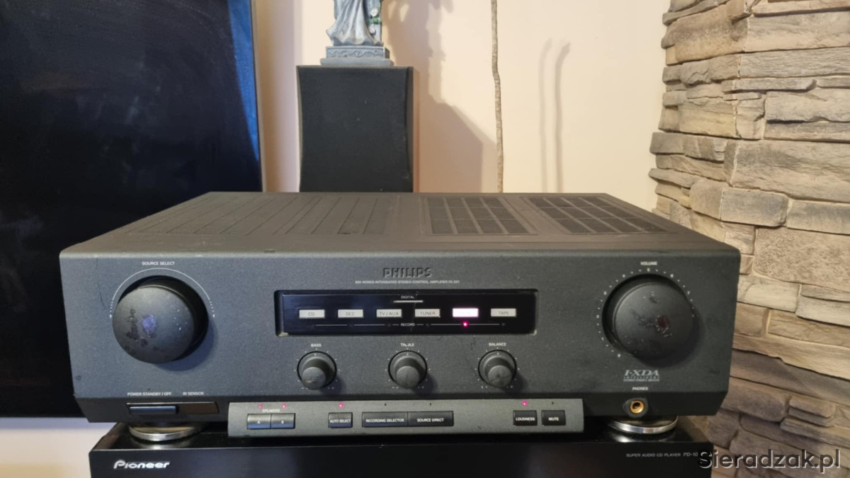 Zaletą philipsa jest piękne analogowe brzmienie a to dzięki temu że końcówka mocy zrobiona jest na tranzystorach co jest rzadkością. Drugą niewątpliwie zaletą jest dydykowane wejście na korektor graficzny. Był to referencyjny wzmacniacz w czasie promowania magnetofonu DCC przez philipsa stąd bardzo miłe analogowe brzmienie.