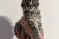 Aston to klasyczny niebieski Maine Coon – duży, harmonijny, z pięknym odcieniem futra. Ma bardzo „dorosły” wygląd już na etapie kociaka.