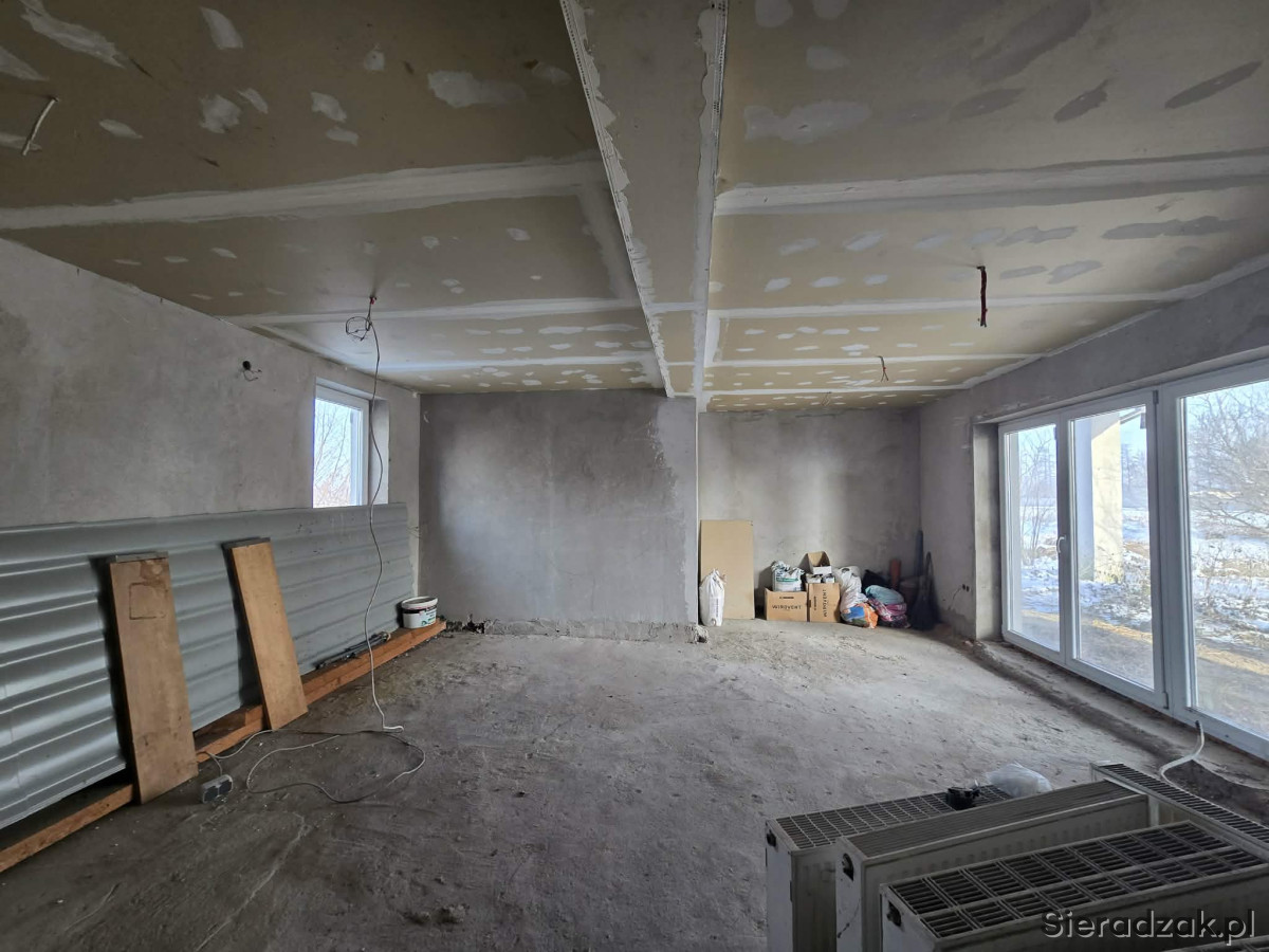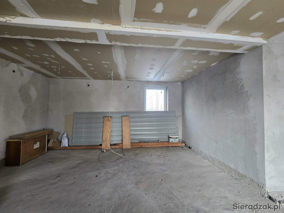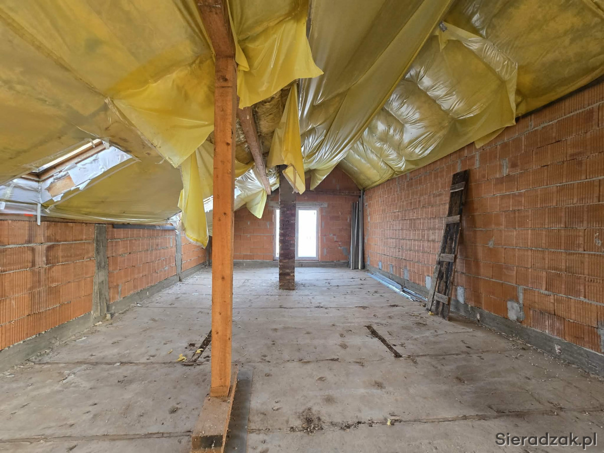 Dom w stanie surowym zamkniętym o powierzchni 150m2 - niepodpiwniczony, parterowy z poddaszem użytkowym usytuowany na działce o powierzchni 9529,43m2 w gminie Goszczanów, powiat sieradzki.