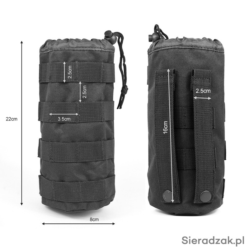 Przedmiotem aukcji jest nowa, taktyczna, uniwersalna torba na butelkę z systemem montażu Molle do kamizelki kuloodpornej lub szturmowej, paska spodni lub plecaka z systemem Molle.