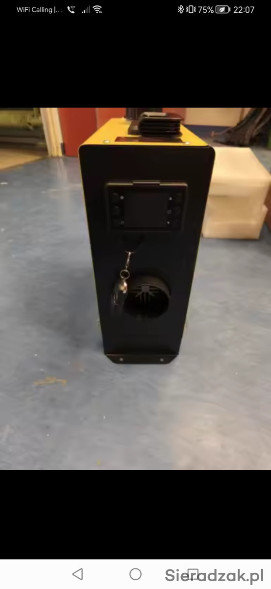 Nowy ogrzewacz powietrza Webasto Sunster 8kW 12V, przeznaczony do przyczep kempingowych, garaży lub namiotów. Urządzenie zapewnia efektywne ogrzewanie w chłodne dni.