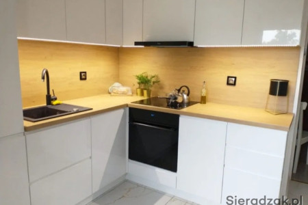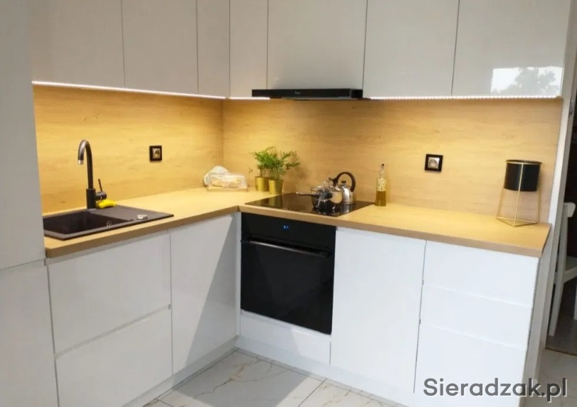 *pełna zabudowa ze sprzętem AGD - lodówka z zamrażarką, piekarnik, kuchenka indukcyjna, zmywarka, okap